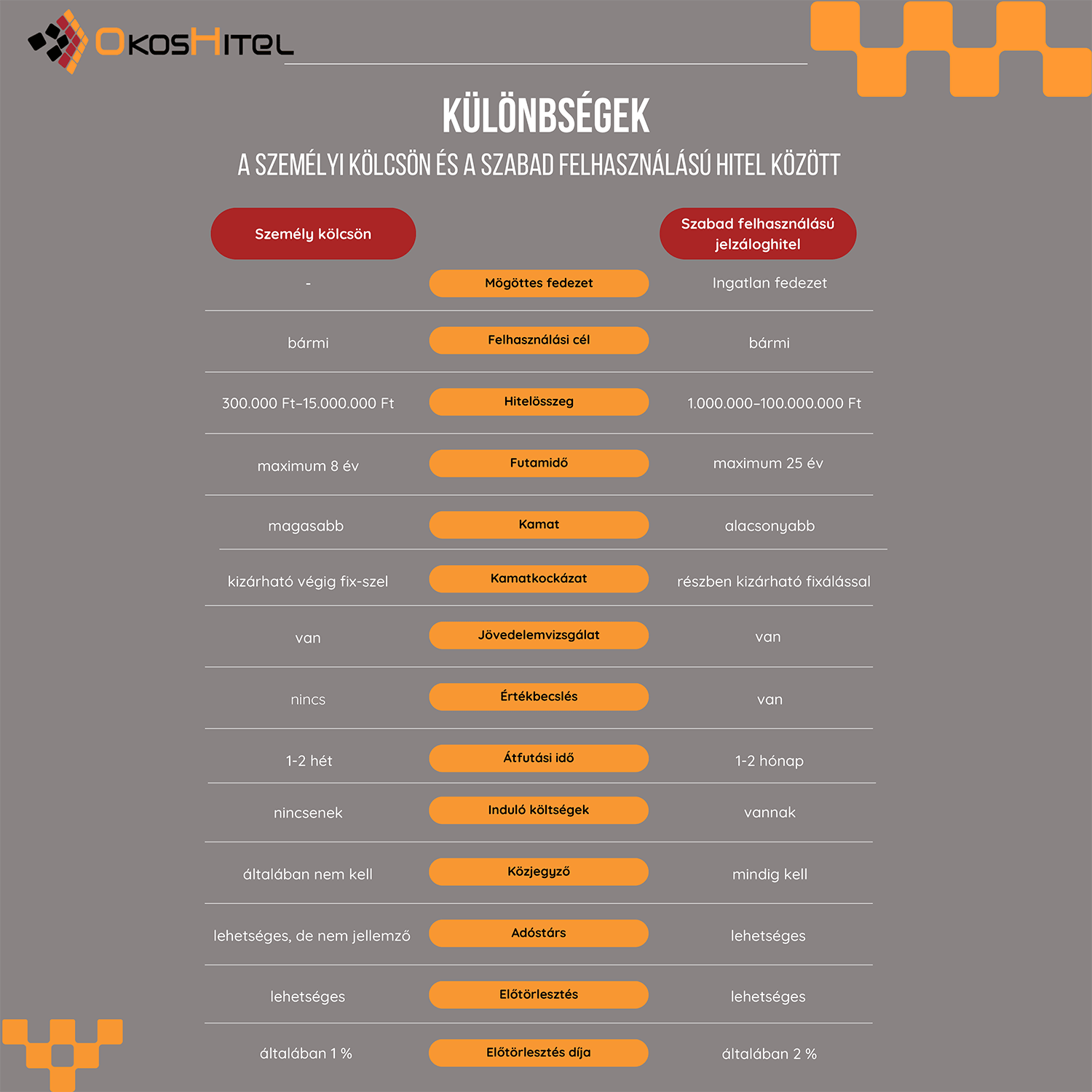| Személyi kölcsön | Szabad felhasználású jelzáloghitel |