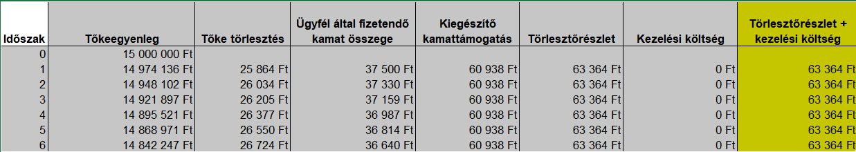 Megjegyzés: 3%-os támogatott kamattal, egy éves türelmi idővel, 25 éves futamidőre
