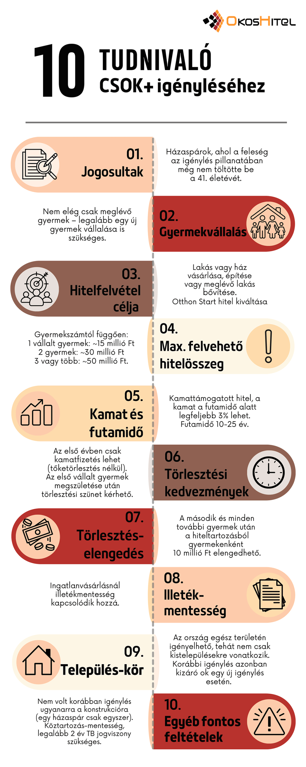 A korábban felvett CSOK vagy támogatott hitel nem kizáró ok a CSOK Plusz igénylésekor, de magát a CSOK Pluszt mindenki csak egyszer veheti igénybe.